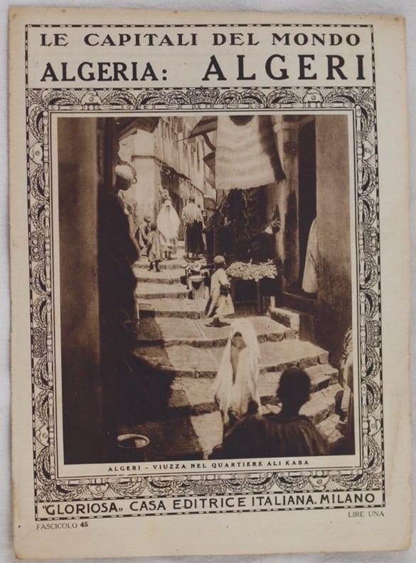 In 4. cm 29x21. Pp. (16). Interessante pubblicazione del 1925 circa sulla città di Algeri in Algeria della collana "Le capitali del mondo". Descrizione della città e numerose foto d'epoca. In buone condizioni. Copertina editoriale in buone condizioni generali con lievi usure ai margini. Legatura in buone condizioni. Pagine in buone condizioni con rare fioriture. Alcune lievi gore d'umidità. Interesting pamphlet of 1925 circa about the city of Algeri of the series "Le capitali del mondo". Description of the city and different photoes of that time In good conditions. Editorial cover in good general conditions slightly worn in the edges and spine. Binding in good conditions. Pages in good conditions with occasional foxings.