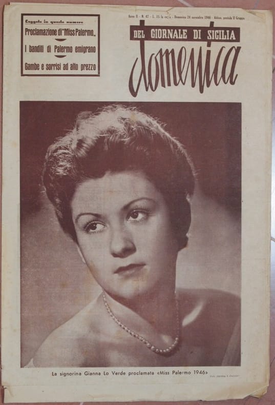 In folio. Dim. 41,5x29,5 cm. Pp. 12. Numero del 24 novembre 1946 di questo quotidiano nazionale siciliano fondato nel 1860 a Palermo e diretto da Girolamo Ardizzone. Il giornale venne fondato subito dopo l'arrivo in Sicilia di Giuseppe Garibaldi. Tra gli argomenti trattati: Verlaine, Walter Pielgeon, Dorothy Lamour, Giuger Rayers, Tahiti e le sue sirene, , Interpreti della lirica a Politeama, I fuorilegge emigrano, Un italiano nelle Hawai ecc.. Belle pubblicità. In discrete condizioni. Raro. Brossura editoriale in buone condizioni generali con lievi usure ai margini e dorso (vedere foto). Legatura assente. All'interno le pagine si presentano in discrete condizioni con rare fioriture. Usure e strappi ai margini. Alcuni segni di tarlo. Number of the 24th of september 1946 of this daily national sicilian magazine established in 1860 in Palermo and directed by Girolamo Ardizzone. The magazine was established after the arrival in Sicily of Giuseppe Garibaldi.. Between the issues treated: Verlaine, Walter Pielgeon, Dorothy Lamour, Giuger Rayers, Tahiti and its mermaids, Interpreters of lyric in Politeama, An italian in Hawai etc.. Beautiful advertisings inside.In good conditions.Scarce copy. Editorial cover in good general conditions slightly worn in the edges and spine (see the photo). Binding is missing. Inside pages are in good conditions with occasional foxings with tears and wearings.