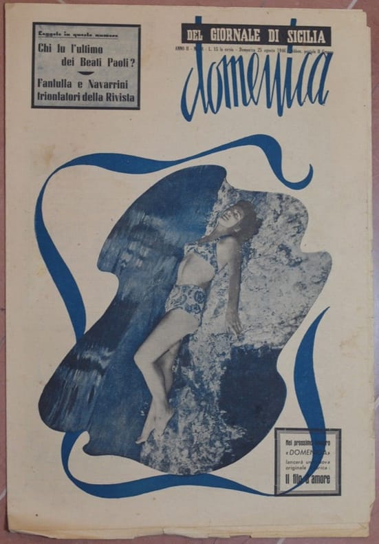 In folio. Dim. 41,5x29,5 cm. Pp. 12. Numero del 25 agosto 1946 di questo quotidiano nazionale siciliano fondato nel 1860 a Palermo e diretto da Girolamo Ardizzone. Il giornale venne fondato subito dopo l'arrivo in Sicilia di Giuseppe Garibaldi. Tra gli argomenti trattati: quando i deputati perdono le staffe, Gozzano, Shaw, Caldo mare nudita, Chi fu l'ultimo beato de Paoli, Volti per il cinema ecc.. Belle pubblicità. In discrete condizioni.Raro. Brossura editoriale in buone condizioni generali con lievi usure ai margini e dorso (vedere foto). Legatura assente. All'interno le pagine si presentano in discrete condizioni con rare fioriture. Usure e strappi ai margini. Number of the 25th of august1946 of this daily national sicilian magazine established in 1860 in Palermo and directed by Girolamo Ardizzone. The magazine was established after the arrival in Sicily of Giuseppe Garibaldi.. Between the issues treated: when deputee get mad, Gozzano, Shaw, beach, The last blessed de Paoli, Faces for the cinema etc.. Beautiful advertisings inside.In good conditions.Scarce copy. Editorial cover in good general conditions slightly worn in the edges and spine (see the photo). Binding is missing. Inside pages are in good conditions with occasional foxings with tears and wearings.