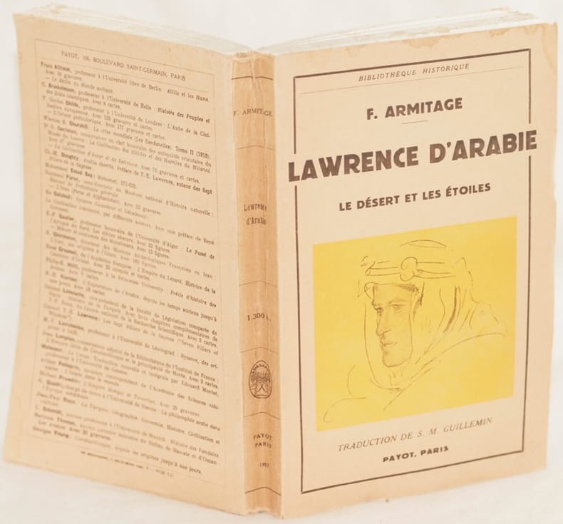 In 8. Dim. 23x14,5 cm. Pp. 339+(3) Edizione del 1957 di questo studio su Thomas Edward Lawrence (1888-1935) conosciuto anche come Lawrence d'Arabia scritto da Armitage. Traduzione di Guillemin. In ottime condizion Copertina editoriale in ottime condizioni generali con lievi usure ai margini e dorso. Legatura in buone condizioni. Pagine in ottime condizioni con rare fioriture. Edition of 1957 of this study about Thomas Edward Lawrence (1888-1935)also known as Lawrence d'Arabia written by Armitage. Translation by Guillemin. In very good conditions. Editorial cover in very good conditions. Occasional foxings.