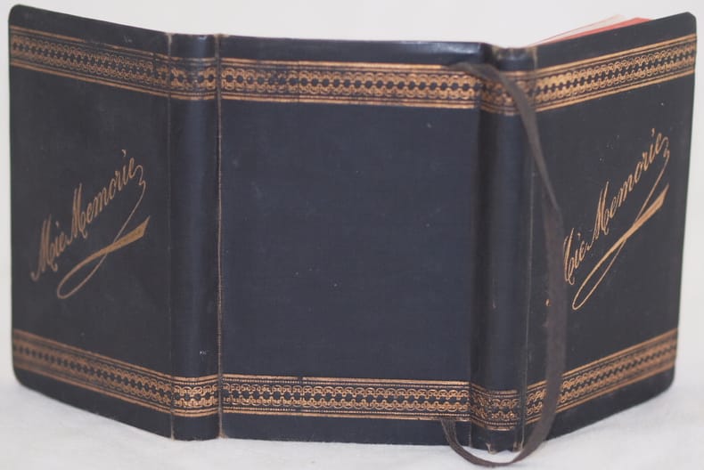 In 24. Dim. 12,5x9 cm. Pp. 210 Deliziosa agendina dell'anno 1890. Nella prima parte calendario con indicazione del Santi e delle lune.Segue tariffa postale del Regno, Alcune note manoscritte nelle prime 12 pagine con un piccolo diario quotidiano. Copertina con ricche decorazioni in oro e titolo ai piatti. In ottime condizioni. Copertina in piena tela con ricche decorazioni in oro in ottime condizioni generali con lievi usure ai margini e dorso. Laccio di chiusura. Legatura in ottime condizioni. All'interno le pagine si presentano in ottime condizioni. Nice little agenda of the year 1890. In the first part calendar with indication of Saints and moons. Then postage fees of the Reign. Some handwritten note in the first 12 pages with a little daily diary. Cover with rich golden decorations and title in the spine. In very good conditions. Full cloth cover with rich golden title and decorations in very good general conditions slightly worn in the edges and spine. Closure lace. Binding in very good conditions. Inside pages are in very good conditions.