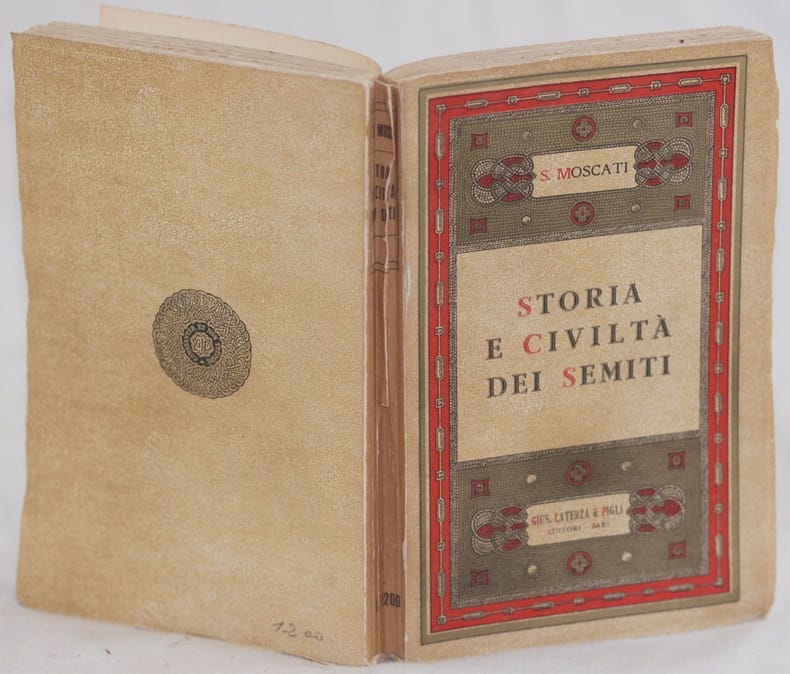 In 8. cm 21,5x14,5. Pp. XV+245+(3)+33. Prima edizione del 1949 di questa opera sulla storia e civiltà dei semiti scritta dall'archeologo Sabatino Moscati (1922-1997). Alla fine del volume 33 planches che mostrano reperti e monumenti. All'interno: Arabia, Siria e Palestina, MEsopotamia, Nome lingua razza, Le origini, I babilonesi e gli Assiri (le scoperte, gli scavi) Sumeri, Cananei, Ebrei, Bibbia, Aramei, Arabi, Etiopi ecc... In ottime condizioni. Copertina editoriale in buone condizioni generali con lievi usure ai margini. Legatura in buone condizioni. Pagine in ottime condizioni con rare fioriture. First edition of 1949 of this work about history about jewish about the archeologist Sabatino Moscati (1922-1997). At the end of the volume 33 planches showing monuments and pieces of art. Inside: Arabia, Siria and Palestine, MEsopotamia, Name languages race, Origins, Babilonians and Assyres (discoveries, escavations) Sumeri, Cananei, Ebrei, Bibbia, Aramei, Arabi, Etiopi ecc... In very good conditions Editorial cover in good general conditions slightly worn in the edges and spine. Binding in good conditions. Pages in very good conditions with occasional foxings.