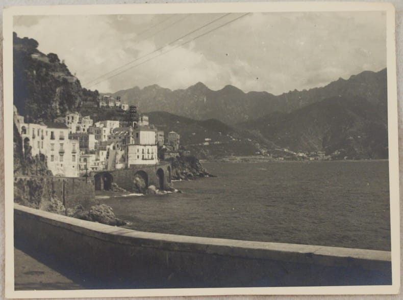 Foto originale del 1950 che mostra il panorama di Amalfi. Nota manoscritta al verso Amalfi 50. Dimensioni foto: mm 8,5x11,5. In ottime condizioni. Original photo of may 1950 showing a panorama of Amalfi. Size of the photo: mm 8,5x11,5. In very good conditions.