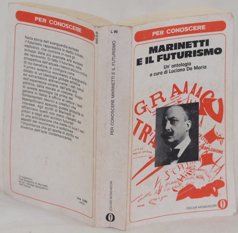 In 8. Dim. 19x11 cm. Pp. LXVI+(8)+482+(2). Edizione del 1977 di questo studio su Marinetti e il futurismo a cura di Luciano de Maria. Alcune illustrazioni in bianco e nero. Alcune note manoscritte. In buone condizioni. Copertina editoriale in buone condizioni generali con lievi usure ai margini e dorso. Legatura in buone condizioni. Pagine in ottime condizioni con rare fioriture. Edition of 1977 of this study about Marinetti and futurism written by Luciano de Maria. Some black and white illustrations. Some handwritten notes. In good conditions. Editorial cover in good general conditions slightly worn in the edges and spine. Binding in good conditions. Pages are in very good conditions with occasional foxings.