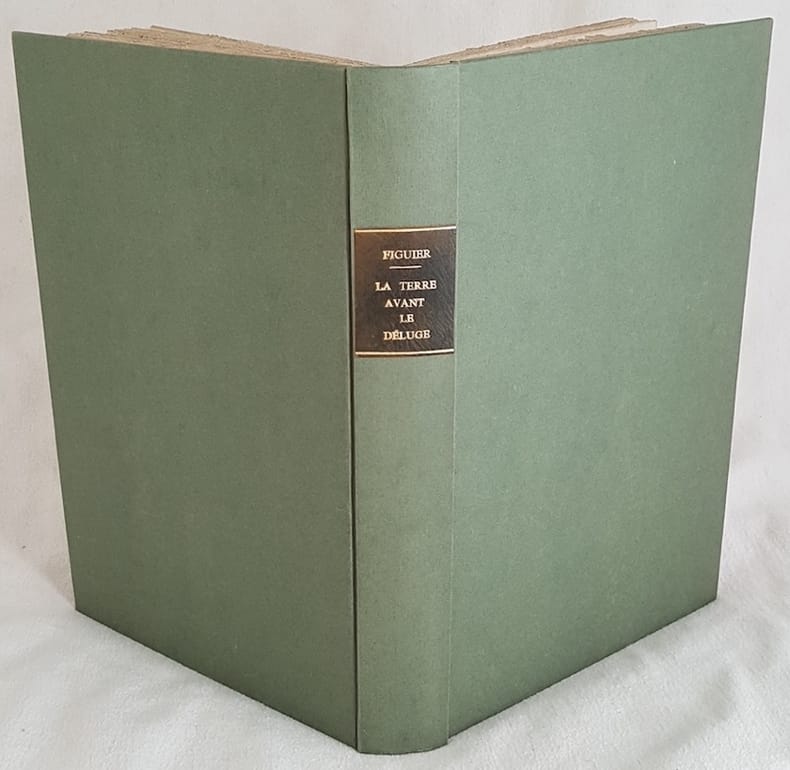 ouvrage contenant 25 vues idéales de l'ancien monde (reconstitutions de paysages de différentes ères géologiques) dessinées par Riou, 310 figures et 7 cartes géologiques en couleurs. Une "Coupe idéale de l'écorce solide du globe terrestre" en couleurs en frontispice. De nombreuses planches de fossiles avec un index en fin de volume des fossiles cités. Bon exemplaire. Après des considérations générales sur l'histoire de la Terre, l'auteur développe la description des différentes époques géologiques considérées au XIXe (primitive, de transition -silurien, dévonien, houiller, permien-, secondaire -triasique, jurassique, crétacé-, tertiaire -éocène, miocène, pliocène-, quaternaire -déluges, glaciaire, création de l'homme et le déluge asiatique-) et l'étude des formations éruptives. l'épilogue se termine sur une vaste question sans réponse : "l'espèce humaine doit-elle un jour s'anéantir et disparaître du globe ?", suivie de considérations religieuses. Guillaume Louis Figuier, né le 15 février 1819 à Montpellier et mort le 8 novembre 1894 à Paris 9e, est un écrivain et vulgarisateur scientifique français. Louis Figuier est le vulgarisateur scientifique le plus prolifique du XIXe siècle, célèbre par le nombre et la qualité des articles de revues et des ouvrages qu'il a publié de 1848 à 1894. Ayant débuté par une prometteuse carrière scientifique en pharmacie, chimie, physique, celle-ci s'achève par son affrontement avec Claude Bernard en 1854. Après cet échec, il se consacre entièrement à la vulgarisation, inventant même un théâtre scientifique qui n'aura pas le succès escompté. vol in-8. 245x165, relié demi chagrin, dos à nerfs, frottements, 432 pages, toutes tranches dorées. Hachette 1863. Edition Originale