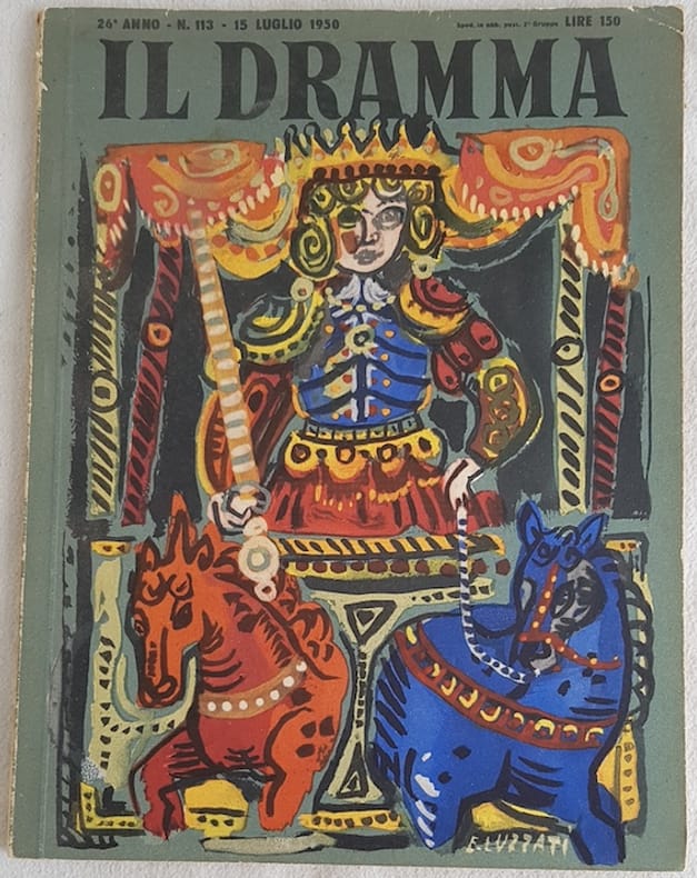 In 8. Dim. 24,5x18,5 cm. Pp. 61+(1). Numero del 15 Luglio 1950 di questa interessante rivista quindicinale diretta da Lucio Ridenti di commedie di successo. La rivista nacque mensile nel 1925 e divenne quindicinale dal 1928. All'interno commedie di teatro, racconti e articoli: A ciascuno secondo la sua fame di Jean Mogin, Il pantragismo di Hebbel, Michel de Ghelderode, La moda del teatro en plein air, Mentre Ballavamo di Noel Coward, L'anarchia di Vittorio Alfieri ecc... Bella illustrazione in copertina di Emanuele Luzzati (1921-2007). Copertina editoriale in ottime condizioni generali con lievi usure ai margini e dorso. Legatura in buone condizioni. All'interno le pagine si presentano in ottime condizioni con rare fioriture.Number of the 15th of July 1950 of this interesting magazine directed by Lucio Ridenti of plays of success.<BR>The magazine was born monthly in 1925 and became of fifteen days in 1928.<BR>Inside plays of theatre and tales: A ciascuno secondo la sua fame di Jean Mogin, Il pantragismo di Hebbel, Michel de Ghelderode, La moda del teatro en plein air, Mentre Ballavamo di Noel Coward, L'anarchia di Vittorio Alfieri etc... Beautiful illustration in the cover Emanuele Luzzati (1921-2007). Editorial cover in very good general conditions slightly worn in the edges and spine. Binding in good conditions. Inside pages are in very good conditions with occasional foxings.
