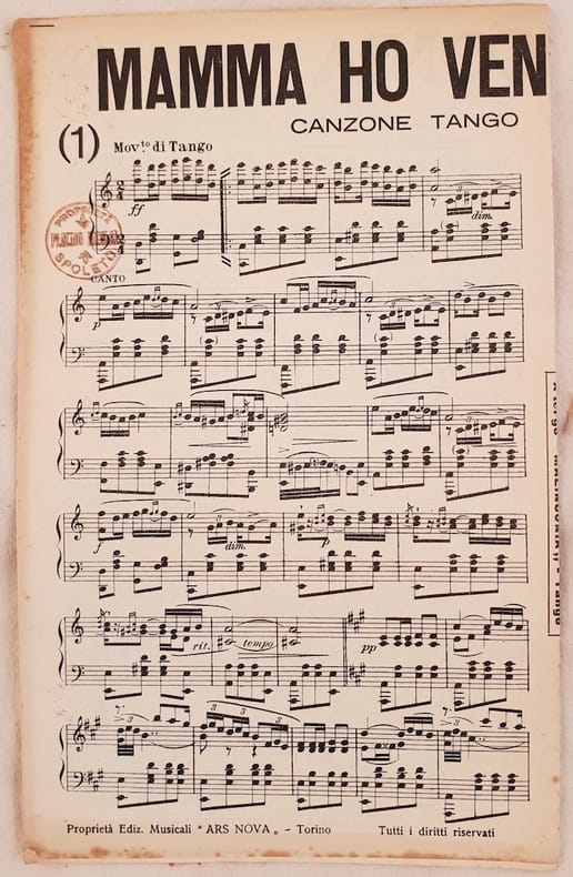 Bello spartito, partitura completa per orchestra senza data ma degli anni '30 di due canzoni di Leo Pant e R. Valente.Copertina mancante. GENERE: Tango STRUMENTI: pianoforte, violino, violoncello, contrabasso, clarino/clarinetto, flauto, sassofono, batteria, trombe, trombone ANNO: anni '30 DIMENSIONI: In 8. cm 27,5x18 PAGINE: 28 CONDIZIONI: In buone condizioni NOTE: Ex libris alla prima pagina Beautiful score of two songs, a complete score for orchestra of 1930's of two songs of Leo Pant and R. Valente. <BR>Cover is missing MUSIC: Tango STRUMENTI: piano; violin; violoncello; contrabbass; clarion/clarinet, flute, saxophone, drums, trumpet, trombone YEAR: 1930's SIZE: In 8. cm 27,5x18 PAGES: 28 CONDITIONS: In good conditions NOTES: Ex libris in the pages