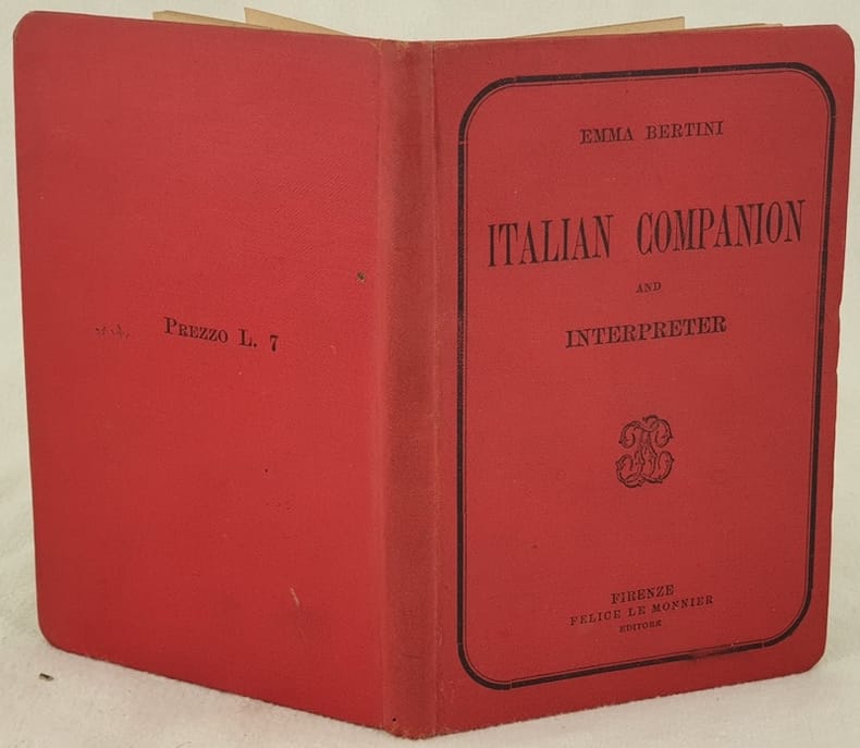 Edizione del 1921 di questo manuale di conversazione italiana per inglesi scritto da Emma Bertini. All'interno brevi cenni di grammatica e frasi di uso comune. In ottime condizioni. Copertina in tela editoriale in ottime condizioni generali con lievi usure ai margini e dorso. Legatura in buone condizioni. Pagine in ottime condizioni con rare fioriture. In 16. Dim. 16x11 cm. Pp. 143.Edition of 1921 of this manual of italian conversation for english people written by Emma Bertini. insdie brief information of grammar and sentences of common usages. In very good conditions. Cloth editorial cover in very good general conditions slightly worn in the edges and spine. Binding in good conditions. Pages in very good conditions with occasional foxings. In 16. Dim. 16x11 cm. Pp. 143.