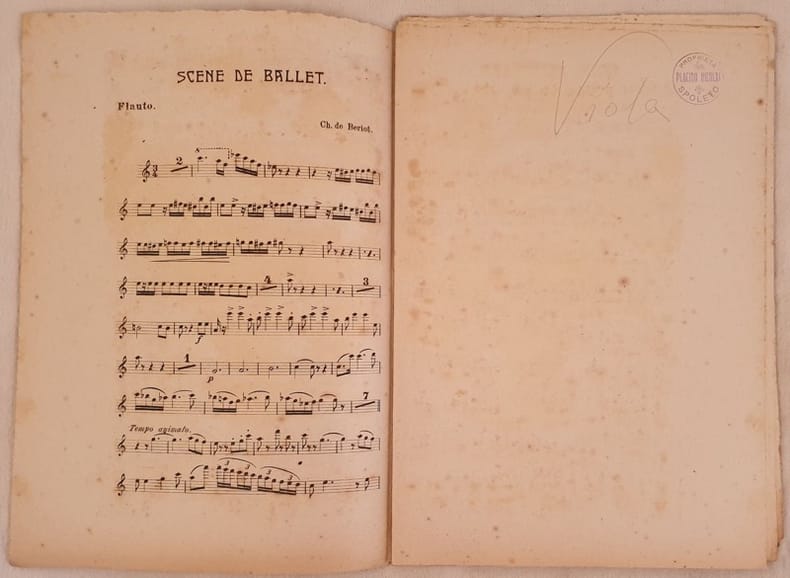 Bello spartito, partitura completa per orchestra della seocnda metà dell'ottocento di un pezzo di musica classica di Charles Auguste de Beriot (1802-1870). Copertina mancante. Ex libris in qualche pagina GENERE: STRUMENTI: viola, violini clarinetto flauto trombone pistone ANNO: seconda metà XIX secolo NOTE: In 8. cm 25x18. pp. 14. Ottime condizioni. Beautiful score a complete score for orchestra of the second half of XIX century by Charles Auguste de Beriot (1802-1870).<BR>Cover is missing. Ex libris in some pages MUSIC: INSTRUMENTS: violins viola, clarinet, flute trombone, piston YEAR: seocnd hald of XIX century NOTES: In 8. cm 25x18. pp. 14. In very good conditions.