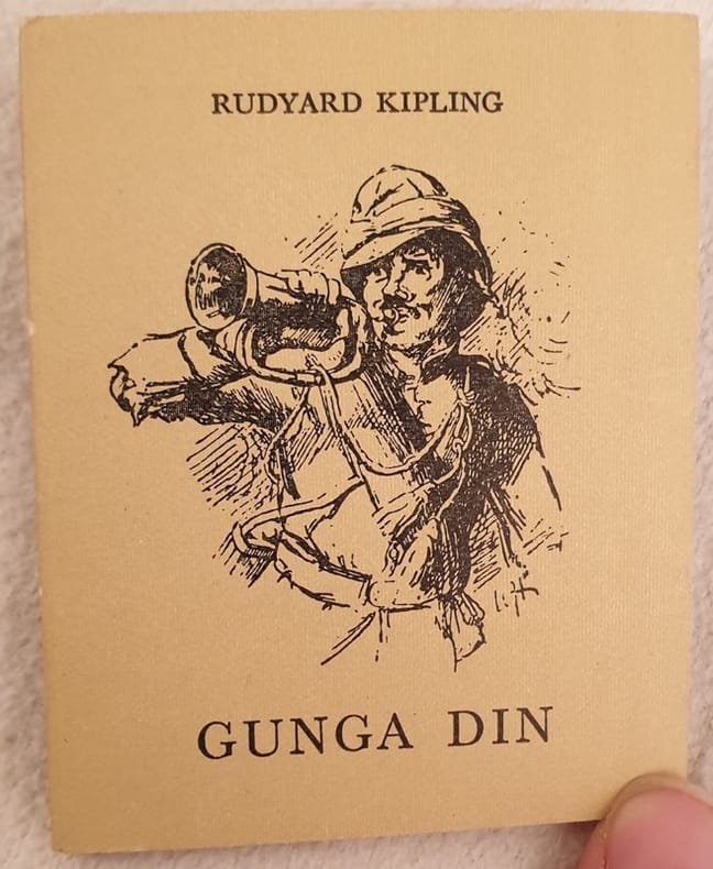 Edizione in miniatura del 1962 di questa poesia di Rudyard Kipling pubblicata a cura di Dianella Selvatico Estense.<BR><BR>Illustrazione in copertina.<BR><BR>In ottime condizioni.<BR>Copertina editroiale in ottime condizioni generali con lievi usure ai margini e dorso. Legatura in buone condizioni. Pagine in ottime condizioni con rare fioriture. In 24. Dim. 7,5x6 cm. Pp. 29+(3). Miniature edition of 1962 of this poem by Rudyard Kipling published by Dianella Selvatico Estense.<BR><BR>Illustration in the cover.<BR><BR>In very good conditions.<BR>Editorial cover in very good general conditions slightly worn in the edges and spine. Binding in good conditions. Inside pages are in very good conditions with occasional foxings. In 24. Dim. 7,5x6 cm. Pp. 29+(3).
