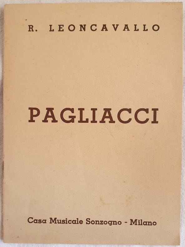 Bel libretto d'opera del 1952 dell'opera in due atti "Pagliacci" del compositore Ruggero Leoncavallo (1857-1919) su libretto del compositore stesso. La prima rappresentazione ebbe luogo al Teatro del Verme a Milano il 21 Maggio 1892. In buone condizioni. Brossura editoriale in ottime condizioni generali con lievi usure ai margini e dorso. Legatura in buone condizioni. All'interno le pagine si presentano in ottime condizioni con rare fioriture. In 16. Dim. 18,5x13,5 cm. Pp. 32.