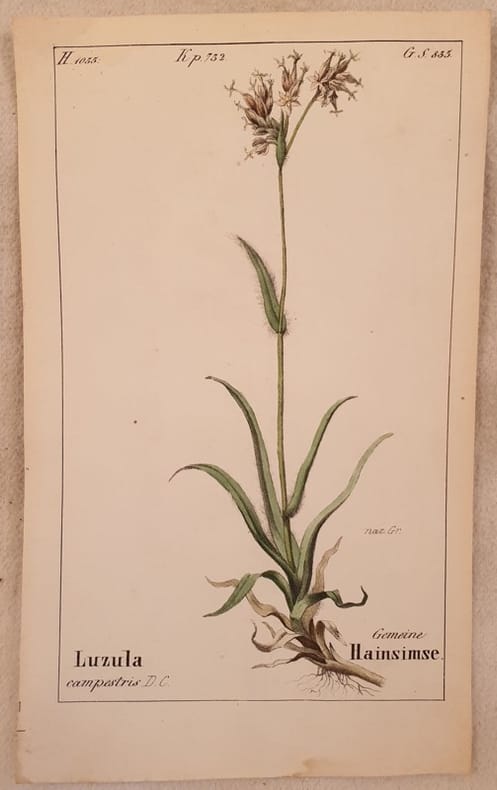 Bella cromolitografia del 1843 tratta dalla celebre opera di botanica "Flora der Schweiz" di Heinrich Romer sulla flora della Svizzera che rappresenta l'erba lucciola comune. In buone condizioni, qualche fioritura. Segni di colla al verso. Luzula campestri TECNICA: Cromolitografia DIMENSIONI FOGLIO: cm 18x11 DIMENSIONI INCISIONE: cm 15,5x9,5 EPOCA: 1843 CONDIZIONI: Buone condizioni, qualche fioritura. Resto di colla al verso.Beautiful chromolythography of 1843 taken form the famous work of botany "Flora der Schweiz" by Heinrich Romer about flowers of Switzerland representing Field wood rush. In good conditions, some foxings. Glue signs in the verso of page Luzula campestris TECHNIQUE: Lytography PAGE SIZE: cm 17,5x11 PRINT'S SIZE: cm 15,5x9,5 PERIOD: 1843 CONDITION: good conditions with some foxings. Little tears in the lower edge. Glue signs in the verso of page.