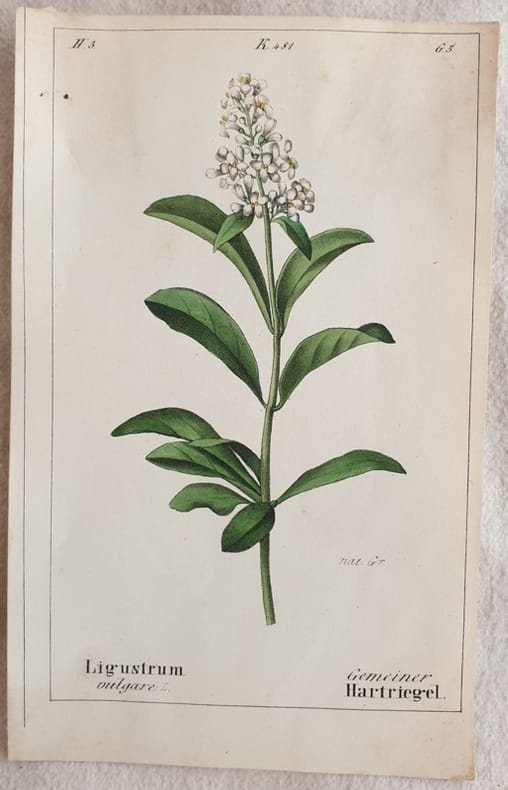 Bella cromolitografia del 1843 tratta dalla celebre opera di botanica "Flora der Schweiz" di Heinrich Romer sulla flora della Svizzera che rappresenta il ligustro. In buone condizioni, qualche fioritura. Segni di colla al verso. TECNICA: Cromolitografia DIMENSIONI FOGLIO: cm 17,5x11 DIMENSIONI INCISIONE: cm 15,5x9,5 EPOCA: 1843 CONDIZIONI: Buone condizioni, qualche fioritura. Resto di colla al verso. Alcuni strappi. Beautiful chromolythography of 1843 taken form the famous work of botany "Flora der Schweiz" by Heinrich Romer about flowers of Switzerland. In good conditions, some foxings. Glue signs in the verso of page. TECHNIQUE: Lytography PAGE SIZE: cm 17,5x11 PRINT'S SIZE: cm 15,5x9,5 PERIOD: 1843 CONDITION: good conditions with some foxings. Little tears in the lower edge. Glue signs in the verso of page. Some tears