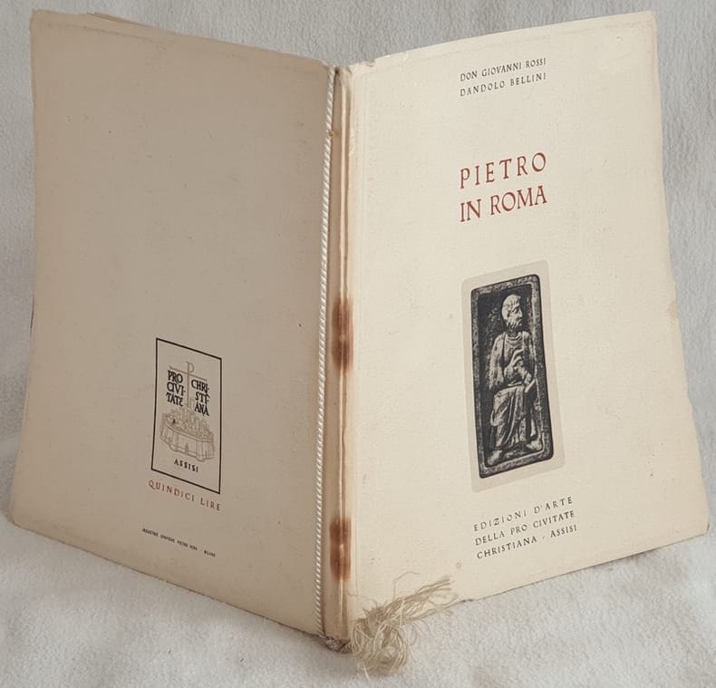 Edizione senza data ma del 1942 di questo delizioso volumetto di Don Giovanni Rossi. All'interno undici scorci di Roma di Dandolo Bellini. Alla fine calendario petriano del 1943. In buone condizioni. Copertina editoriale in buone condizioni generali con lievi usure ai margini e dorso. Legatura in buone condizioni. All'interno le pagine si presentano in ottime condizioni con rare fioriture. In 16. Dim. 16,5x14 cm. Pp. (28). Noty dated edition but of 1943 circa of this nice little volume by Don Giovanni Rossi.<BR><BR>insdie 11 views of Rome by Dandolo Bellini. At the end calendar of 1943. In good conditions. Editorial cover in good general conditions slightly worn in the edges and spine. Binding in good conditions. Pages in very good conditions with occasional foxings. In 16. Dim. 16,5x14 cm. Pp. (28).