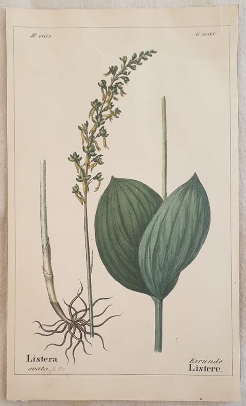Bella cromolitografia del 1843 tratta dalla celebre opera di botanica "Flora der Schweiz" di Heinrich Romer sulla flora della Svizzera che rappresenta l'orchidea listera maggiore. In buone condizioni, qualche fioritura. Segni di colla al verso. Listera ovata TECNICA: Cromolitografia DIMENSIONI FOGLIO: cm 17,5x11 DIMENSIONI INCISIONE: cm 15,5x9,5 EPOCA: 1843 CONDIZIONI: Buone condizioni, qualche fioritura. Resto di colla al verso.Beautiful chromolythography of 1843 taken form the famous work of botany "Flora der Schweiz" by Heinrich Romer about flowers of Switzerland representing an orchid. In good conditions, some foxings. Glue signs in the verso of page. Listera ovata TECHNIQUE: Lytography PAGE SIZE: cm 17,5x11 PRINT'S SIZE: cm 15,5x9,5 PERIOD: 1843 CONDITION: good conditions with some foxings. Little tears in the lower edge. Glue signs in the verso of page.<BR><BR>