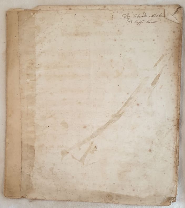 Edizione della seconda metà dell'ottocento di questo spartito per pianoforte e violino del pezzo "1 Fantasia sulla Giovanna de Guzman" dell'opera "Mosaici italiani" per pianoforte e violino del compositore A. Pessina. Presente partitura per pianoforte e violino e per violino separato. Antica nota manoscritta alla prima pagina bianca. Mediocri condizioni. Rinforzi marginali, strappi e segni di nastro adesivo. In 8. cm 29x26,5. pp. 12, 3. Edition of the second half of 19th century of this musical score for piano and violin "1 Fantasia sulla Giovanna de Guzman" of the work "Mosaici italiani" by the composer A. Pessina. Musical score for piano and violin and for violin separated. Ancient handwritten note in the first ehitw page. Poor conditions. Reinforcements in the edges, tears and signs of adhesive tape. In 8. cm 29x26,5. pp. 12, 3.