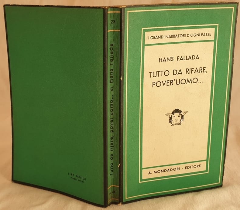 Edizione italiana del 1941 di questo romanzo dello scrittore tedesco Hans Fallada. Il titolo originale dell'opera: "Kleiner Mann, Grosser Mann Alles Vertauscht!. In buone condizioni Copertina editoriale in buone condizioni generali con lievi usure ai margini e dorso. Legatura in buone condizioni. All'interno le pagine si presentano in ottime condizioni con rare fioriture. In 8. Dim. 20x12,5 cm. Pp. 404+(4).Italian edition of 1941 of this novel by the german writer Hans Fallada. The original title of the work: "Kleiner Mann, Grosser Mann Alles Vertauscht!. In good conditions. Editorial cover in good general conditions slightly worn in the edges and spine. Binding in good conditions. Inside pages are in very good conditions with occasional foxings. In 8. Dim. 20x12,5 cm. Pp. 404+(4).