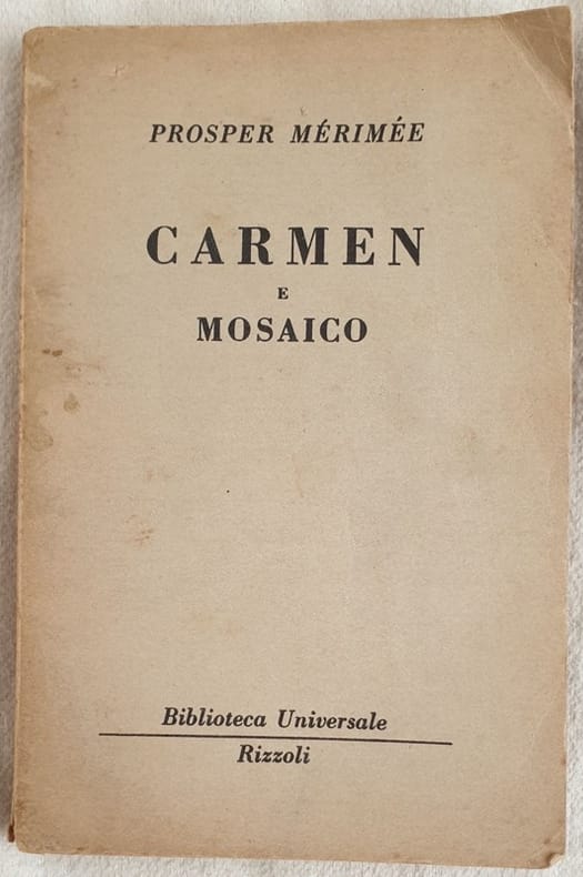 Edizione Bur del 1949 di questo romanzo di Prosper Merimee. In buone condizioni. Copertina editoriale in buone condizioni generali con lievi usure ai margini e dorso. Legatura in buone condizioni. All'interno le pagine si presentano in buone condizioni con fioriture. Usure all'angolo superiore destro delle prime 12 pagine. In 16. Dim. 16x10,5 cm. Pp. 164+(4). Bur edition of 1949 of this novel by Prosper Merimee. In good conditions. Editorial cover in good general conditions slightly worn in the edges and spine. Binding in good conditions. Pages in good conditions with foxings. earings in the upper right corner of the first 12 pages. In 16. Dim. 16x10,5 cm. Pp. 164+(4).
