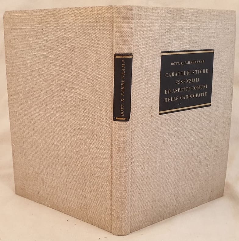 Monografia del 1936 sulle cardiopatie scritto da Fahrenkamp. Traduzione italiana a cura del Dott. Gino Minghella. Prefazione dei dott. Luigi Frassi e Carlo Vallardi. In ottime condizioni. Copertina in tela editoriale in ottime condizioni generali con lievi usure ai margini e dorso. Legatura in buone condizioni. All'interno le pagine si presentano in ottime condizioni con rare fioriture. In 8. Dim. 25,5x18,5 cm. Pp. 217+(1). Monography of 1936 about deseases of heart Fahrenkamp. Italian translation by Dott. Gino Minghella. Prefation by dott. Luigi Frassi and Carlo Vallardi. In very good conditions. Cloth editorial cover in very good general conditions slightly worn in the edges and spine. Binding in good conditions. Inside pages are in very good conditions with occasional foxings. In 8. Dim. 25,5x18,5 cm. Pp. 217+(1).