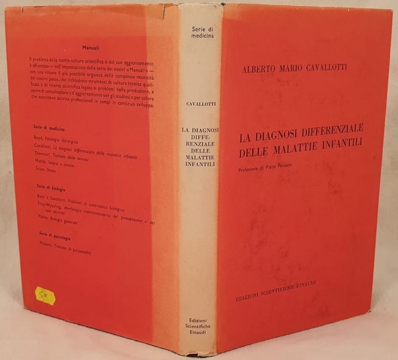 Edizione del 1958 di questa monografia sulla diagnosi differenziale delle malattie infantili scritto da Alberto Mario Cavallotti. Prefazione di Piero Fornara. Alcune foto all'interno. In ottime condizioni. Copertina editoriale con sovraccoperta in ottime condizioni con lievi usure ai margini e dorso. Legatura in buone condizioni. Pagine in ottime condizioni con rare fioriture. In 8. Dim. 24,5x16 cm. Pp. VIII+281+(3). Edition of 1958 of this monography about diagnosis of children deseases written by Alberto Mario Cavallotti. Prefation by Piero Fornara. Some photoes inside. In very good conditions. Editorial cover with dustjacket in very good geenral conditions slightly worn in the edges and spine. Binding in good conditions. Pages in very good conditions with occasinal foxings. In 8. Dim. 24,5x16 cm. Pp. VIII+281+(3).