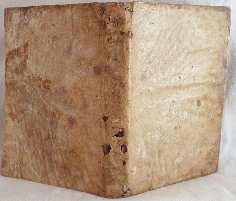 Edizione del 1692 di questa opera religiosa del Padre Luigi Giuglaris (1607-1653) della Compagnia di Gesu. Il volume contiene prediche morali e panegiriche con quattro sermoni dell'Autore. All'interno: prediche quaresimali, Assunzione, In lode di san Giovanni Battista, Concezione Beatissima Vergine, Santissima sindone di Torino, Detto alle Insigne Congregatione delle Signore Humilitate in Torino, Nel vestirsi monache le Signore Veronica Maddalena e Paola MAria Francesca sorelle Roveri in Genova, Nel vestirsi Monaca la Signora Ester N. N. in Genova ecc... In mediocri condizioni. Copertina in piena pergamena con titolo manoscritto al dorso in discrete condizioni con lievi usure marginali. Legatura in mediocri condizioni, corpo del libro in parte staccato. Pagine in discrete condizioni con fioriture e gore d'umidità marginali. Piegatura alle carte dalla 159 alla 170. In 8. Cm 20,5x14. Pp. (8)+220.Edition of 1692 of this religious work by Luigi Giuglaris (1607-1653) of Jesus Company. The volume contains moral preeches and and four sermons of the author. Inside: Eastern preeches, Assumption, In lode of Saint Giovanni Battista, Very blssed Virgin, sindone of Turin, Insigne Congregatione delle Signore Humilitate in Turin, Signore Veronica Maddalena and Paola MAria Francesca sorelle Roveri in Genoa, Monaca la Signora Ester N. N. in Genova ecc... In poor conditions. Full parchment coeval cover with handwritten title in the spine in good conditons slightly worn in the edges and spine. Binding in poor conditions, the body of the book almost totally detached. Pages in fair conditions with foxings and dump stains. Foldings in pages from 159 until 170. In 8. Cm 20,5x14. Pp. (8)+220.