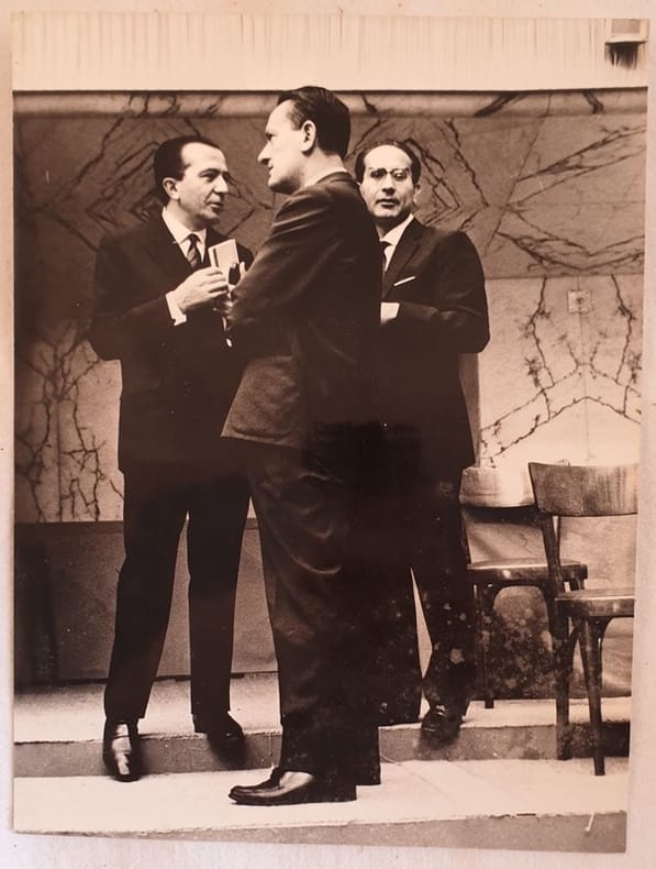 Fotografia originale che mostra i politici Giulio Andreotti, Emilio Colombo e Benigno Zaccagnini nel 1964 durante il Governo Aldo Moro (1916-1978) Al verso nota manoscritta e timbro dell'ANSA (Agenzia Nazionale stampa associata). In buone condizioni, fioriture. Cm 24x18,5.Original photo showing the politicians Giulio Andreotti, Emilio Colombo and Benigno Zaccagnini in1964 during Government Aldo Moro (1916-1978) In the verso handwritten note and stamp of ANSA (Agenzia Nazionale stampa associata). In good conditions, foxings. Cm 24x18,5.<BR><BR>