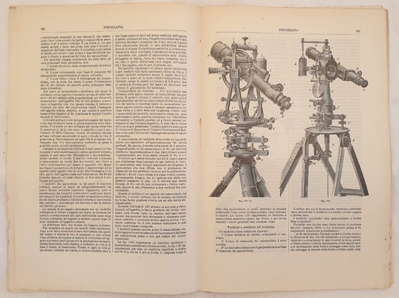 Interessante estratto del 1890 circa tratto dall'Enciclopedia delle arti e industrie edita da Utet sulla topografia scritto dall'Ing. Vittorio Baggi. La parte relativa alla topografia inizia da pag. 647 e consta di 42 pagine. All'interno numerose illustrazioni che mostrano diversi strumenti. In ottime condizioni. Copertina assente. Legatura quasi assente. All'interno le pagine si presentano in ottime condizioni con rare fioriture. In 4. Dim. 31x20,5 cm. Pp. da 647 a 688. Interesting extract of 1890 circa from Enciclopedia delle arti e industrie edited by Utet about sea rescue written by Vittorio Baggi. The part relating topography begins from pag. 647 and it is made uop of 42 pages. Inside different illustrations showing different instruments. In very good conditions. Cover is missing. Binding is almost missing. Inside pages are in very good conditions with occasional foxings. In 4. Dim. 29x19,5 cm. Pp. from 647 to 688.
