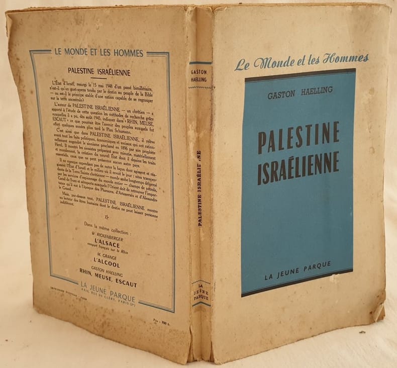 Edizione del 1952 di questa opera sulla Palestina israeliana scritta da Gaston Haelling. All'interno: lo Sionismo ( a bordo del Kedmah, Azxione di Herzi), La terra, Le tre citta (Haifa, Tel Aviv, Gerusalemme), Luoghi Santi (Carmelo, Nazareth, Laco di Tiberiade, Gerusalemme), Combattimenti (immigrazione clandestina, Insurrezione del 1947, Indifferenza dell'ONU, Yichouv,Battaglia di Neguev), Economia, Politica interna ed estera, Politica straniera ecc... Mappa ripiegata in antiporta. In buone condizioni. Copertina editoriale in buone condizioni generali con leggere usure ai marginie dorso. Legatura in buone condizioni. All'interno le pagine si presentano in ottime condizioni con rare fioriture. In 8. Dim. 23x14,5 cm. Pp. 286+VII+(4).Edition of 1952 of this work about Israelian Palestine written by Gaston Haelling. Inside: Sionism ( on board of Kedmah, Herzi), Land, Three cities (Haifa, Tel Aviv, Gerusalemme), Holy places (Carmelo, Nazareth, Laco di Tiberiade, Gerusalemme), Fightings (clandestine immigration, riot of 1947, Indifference of ONU, Yichouv, Battle of Neguev), Economy, Internal and foreign policy ecc... Fodled map in the frontspice. In good conditions. Editorial cover in good general conditions slightly worn in the edges and spine. Binding in good conditions. Inside pages are in very good conditions with occasional foxings. In 8. Dim. 23x14,5 cm. Pp. 286+VII+(4).