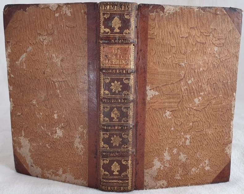 Interessante raccolta di due opere legate insieme nello stesso volume entrambe stampate ad Agria in Grecia. La prima del 1788 sull'officio dei sacerdoti nel sacramento della penitenza scritto da Thomas du Jardin. La seconda del 1789 un istruzione del Cardinale Carlo Borromeo Arcivescovo di Milano sulla confessione. Testo latino. In ottime condizioni. Copertina in mezza pelle coeva in buone condizioni generali con lievi usure ai margini e dorso. Legatura in buone condizioni. All'interno le pagine si presentano in buone condizioni con fioriture. In 8. Dim. 19x12 cm. Pp. (8)+408+(8)+99+(5).Interesting colelction of two works bound together in a unique volume both published in Agria in Greece. The first one in 1788 about the officve of priests in the sacrament of penitence written by Thomas du Jardin. The second one of 1789 an instruction of the Cardinal Carlo Borromeo Archibyshop of Milan about confession. Latin text. In very good conditions. Half leather coeval cover in good general conditions slightly worn in the edges and spine. Binding in good conditions. Inside pages are in good conditions with foxings. In 8. Dim. 19x12 cm. Pp. (8)+408+(8)+99+(5).