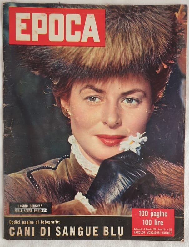 Numero del 2 dicembre 1956 della storica rivista Epoca pubblicata a Milano dal 1950 al 1997.<BR>Tra gli articoli presenti in questo numero: Caccia all'aquila, In Russia il marxismo, Nel rogo di Orly un disco di Mozart, In arrivo Charlot VII, Cani di sangue blu, Luigi Barzini in due mesi da Pechino a Parigi, La Principessa Shahnaz, Allarme a Melbourne, Cadavere ritrovato nel Tamigi, Alfredo Chighine ecc...<BR>Numerose foto in bianco e nero ed a colori all'interno. In buone condizioni. Brossura editoriale in buone condizioni generali con lievi usure ai margini e dorso. Legatura in buone condizioni. All'interno le pagine si presentano in ottime condizioni. In folio. Dim. 34x26 cm. Pp. 98. Number of the 2nd of december 1956 of the hystorical magazine Epoca published in Milan from 1950 until 1997. Inside: Eagle hunting, Marxism In Russia, a Mozart disk in the fire of Orly, Charlot VII is arriving, dogs of blue blood, Luigi Barzini in two months from Beijing to Paris, Princess Shahnaz, Alarm in Melbourne, Dead body found in Tamigi, Alfredo Chighine ecc... Different black and white photoes inside In good conditions. Editorial cover in good general conditions slightly worn in the edges and spine. Binding in good conditions. Inside pages are in very good conditions. In folio. Dim. 34x26 cm. Pp. 98.