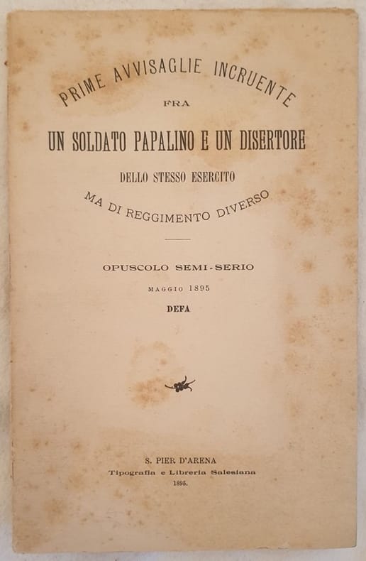 Raro opuscolo del 1895 sulla disputa nata tra Don Enrico Faralli prete di Fojano della Chiana autore dello scritto e l'Ex Padre Pio da Castiglioni poi diventato Pastore Evangelico a Sanremo. In ottime condizioni. Copertina editoriale in ottime condizioni generali con lievi usure ai margini e dorso. Legatura in buone condizioni. All'interno le pagine si presentano in ottime condizioni con rare fioriture, ancora da tagliare. In 8. Dim. 19x12,5 cm. Pp. 63.Scarce pamphlet of 1895 about the dispute between Don Enrico Faralli priest from Fojano della Chiana author of the writing and the former Father Pio da Castiglioni then begun Evangelic Pastore in Sanremo. In very good conditions. Editorial cover in very good general conditions slightly worn in the edges and spine. Binding in good conditions. Inside pages are in very good conditions with occasional foxings, still uncut. In 8. Dim. 19x12,5 cm. Pp. 63.