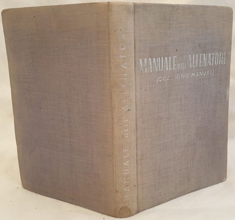 Edizione del 1950 di questo manuale dell'allenatore. Traduzione a cura di Sergio Monteverde. All'interno: storia del gioco, Allenatore e tecnico dell'allenamento, infortuni, periodo di allenamento, durata e intensità, giochi, esercizi, addestramento, giochi di squadra (schivare la palla, Palla lunga, Abbattere la torre, Tennis con i piedi e la testa, Palla al volo, Calcio alternato, calcio libero, calcio coi birilli, calcio camminato, calcio saltellato ecc... L'opera è in un volume ed è completo. Numerose planches fotografiche e illustrazioni nel testo. In buone condizioni. Copertina in tela editoriale in discrete condizioni con lievi usure ai margini e dorso. Legatura in discrete condizioni con qualche lieve rottura. Pagine in ottime condizioni con rare fioriture. In 8. Dim. 20,5x14 cm. Pp. 232+(6). Peso Kg. 0,312Edition of 1950 of this manual about coach. Translation by Sergio Monteverde. The work is in one volume and it is complete Different photographic planches and illustrations in the text. In good conditions. Cloth editorial cover in fair conditions lightly worn in the edges and spine. Binding in fair conditions lightly disbound. Pages are in very good conditions with occasional foxings. In 8. Dim. 20,5x14 cm. Pp. 232+(6). Weight Kg. 0,312