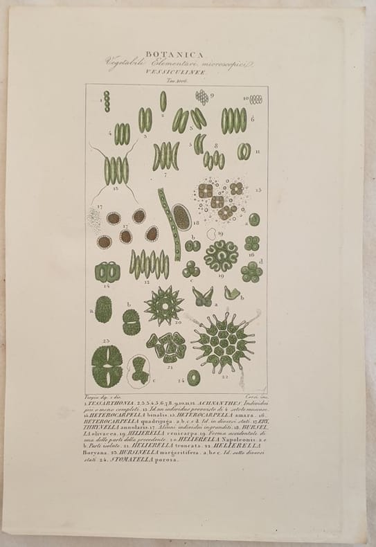 INCISIONE: Litografia con coloritura coeva all'acquarello AUTORE: Corsi su disegno di Turpin ATLANTE: Dizionario di scienze naturali, Firenze Battelli 1831 DIMENSIONI FOGLIO: cm 25,5x17,5 DIMENSIONI INCISIONE: cm 15x9 EPOCA: 1831 circa CONDIZIONI: buone condizioni. Quest'opera imponente era composta da 29 volumi ed era corredata da centinaia di incisioni che rappresentavano tutto il mondo animale e vegetale.<BR>L'opera deriva da un eccellente lavoro di luminari del XVIII secolo supportati dal Re francese Louis XV in seguito guidati dallo stesso Turpin, considerato al tempo il più grande incisore di botanica.<BR>La maggior parte delle incisioni sono firmate Turpin & Pretre.<BR>Carta bianchissima e resistente di ottima qualità.ENGRAVING: Lythograph with coeval colouring with acquarello painting AUTHOR: Corsi after TurpinATLAS: Dizionario di scienze naturali, Firenze Battelli 1831 SIZE OF PAGE: cm 25,5x17,5 SIZE OF THE ENGRAVING: cm 15x9 PERIOD: 1831 circa CONDITIONS: good conditions. This imponent work was made up by 29 volumes and contained hundreds of engravings that represented all the plant and animal kingdom. This work derives from an excellent work of luminaries of the 18th century supported by the french King Louis XV and then directed by the same Turpin that was considered as the greatest botanical engraver of his time. The most of his engravings are signed Turpin & Pretre.<BR>Very white strong paper of good quality.