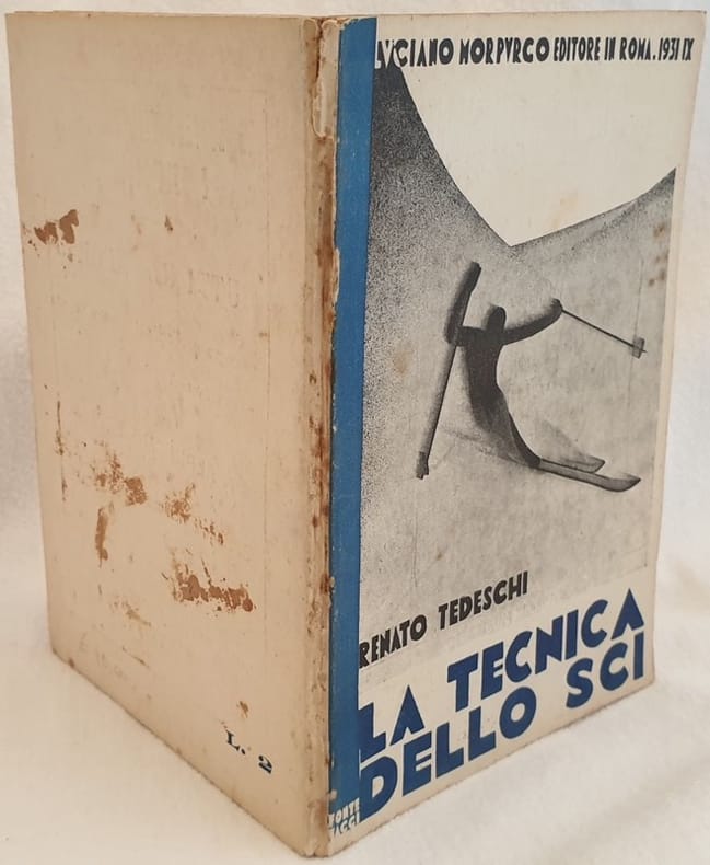 Interessante volume sulle tecniche dello sci del 1931 scritto da Renato Tedeschi. Bella copertina illustrata da Fonte Maggi in stile futurista. Nella prima parte l'autore descrive lo sport dello sci e le attrezzature che occorrevano, poi analizza tutte le varie tecniche (marcia in piano, salita, dietro fronte, discesa, frenaggi, voltate ed arresti, telemark, cristania, salto di voltata e d'arresto, salto su pista, le applicazioni dello sci ecc...). Numerose figure nel testo. In buone condizioni. Brossura editoriale in buone condizioni generali con lievi usure ai margini e dorso. Legatura in discrete condizioni con lievi rotture. All'interno le pagine si presentano in buone condizioni con fioriture. In 16. Dim. 17x12 cm. Pp. 60+(4).Interesting volume about techniques of skiing of 1931 written by Renato Tedeschi. Beautiful cover illustrated by Fonte Maggi in futuristic style. In the first part the author describes the sport of skiing and the the tools used, then he analyzes all the techniques. Different figures in the text. In good conditions. Editorial cover in good general conditions slightly worn in the edges and spine. Binding in fair conditions with slight cracks. Inside pages are in good conditions with foxings. In 16. Dim. 17x12 cm. Pp. 60+(4).
