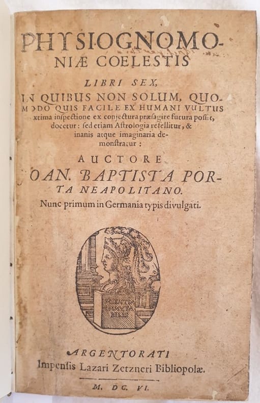 Giambattista della Porta (ou Giovanni Battista Della Porta), (né à Vico Equense vers 1535, mort à Naples le 4 février 1615) est un physicien, opticien, philosophe, cryptologue et alchimiste italien. Ses travaux et exposés sur les lentilles optiques passent pour avoir fortement inspiré la fabrication de la première lunette en 1590.Il travailla à Murano près de Venise, où se trouvaient déjà de célèbres cristalleries.De humana physiognomica libri IV (Naples 1586 in-folio) Etudes sur la medecine, sur les relations entre l'âme et le corps et sur la physionomie. Merci de nous contacter à l'avance si vous souhaitez consulter une référence au sein de notre librairie.