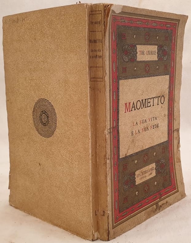 Edizione del 1934 di questa opera sulla vita di Maometto scritta da Tor Andrae. Traduzione italiana a cura di Francesco Gabrieli. All'interno: L'Arabia al tempo di Maometto, Dalla fanciulelzza alla vocazione, Il messaggio religioso di Maometto, La dottrina della rivelazione, Il conflitto con i Quraishiti, Il capo di stato a Medina, La personalità di Maometto. Firma al frontespizio. In buone condizioni. Copertina editoriale in discrete condizioni con usure e macchie. Legatura in buone condizioni. Pagine in buone condizioni con rare fioriture. In 8. Dim. cm 21,5x14,5. Pp. XI+219+(3) Edition of 1934 of this work about the life of Mahomet written by Tor Andrae. Translation by Francesco Gabrieli. Signature in the title page In good conditions. Editorial cover in fair conditions with wearings and stain. Binding in good conditions. Pages in good conditions with occasional foxing. In 8. Dim. cm 21,5x14,5. Pp. XI+219+(3)