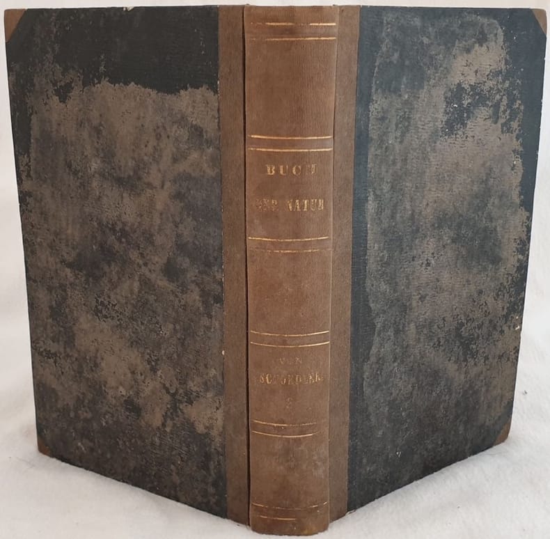 Bella edizione del 1862 di questa opeera di storia naturale scritto da Friedrich Schoedler. All'interno lezioni di fisica, astronomia, chimica, mineralogia, geologia, botanica, fisiologia e zoologia. Numerose illustrazioni in bianco e nero all'interno. Firma datata 1862 alla prima carta bianca In buone condizioni. Copertina in mezza tela con titolo e decoazioni in oro al dorso in buone condizioni generali con lievi usure ai margini e dorso. Legatura in buone condizioni. All'interno le pagine si presentano in buone condizioni con rare fioriture. In 8. Dim. 21,5x14,5 cm. Pp. XII+560 Beautiful edition of 1862 of this work of natural history written by Friedrich Schoedler.<BR><BR>insdie lessons of physics, astronomy, chemistry, mienralogy, geology, botany, physiology and zoology. Different black and white illustrations inside. Signature dated 1862 in the first blank page. In good conditions. Half cloth cover with gilted title and decorations in good general conditions lightly worn in the extremities. Binding in good conditions. Inside pages are in good conditions with occasional foxing. In 8. Dim. 21,5x14,5 cm. Pp. XII+560