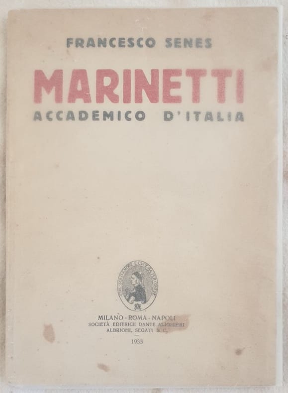 Prima edizione del 1933 di questa opera su Filippo Tommaso Marinetti (1876-1944) fondatore del movimento futurista scritta da Francesco Senes. Dedica firmata da Marinetti e Senes all'editore francese Karl Boes (1864-1940) fondatore del giornale letterario "Le courrier libre" e direttore de "La Plume". "A Karl Boes con cordialità in ricordo della cena della staffa a Marinetti. Francesco Senes, F. Marinetti" In ottime condizioni. Copertina editoriale con copertina protettiva in ottime condizioni generali con lievi usure ai margini e dorso. Legatura in buone condizioni. Pagine in buone condizioni con rare fioriture. In 8. cm 19,5x14. Pp. 30+(4) First edition of 1933 of this work about Filippo Tommaso Marinetti (1876-1944) establisher of futurist movement written by Francesco Senes.<BR><BR>Dedication signed by Marinetti and Senes to the french editor Karl Boes (1864-1940) creator of the litterary magazine "Le courrier libre" and director of "La Plume". "A Karl Boes con cordialità in ricordo della cena della staffa a Marinetti. Francesco Senes, F. Marinetti" In very good conditions. Editorial cover with protective cover in very good conditions lightly worn in the extremities. Binding in good conditions. Pages in good conditions with occasional foxing. In 8. cm 19,5x14. Pp. 30+(4)