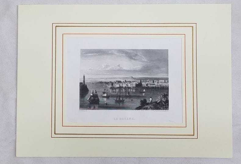 Bella veduta animata di Havana di Cuba del 1860 circa montata in un elegante passepartour. Autore: incisa da Ed. Wuillmann Atlante: Meyer s Universum 1838-1860 circa Data: 1860 circa Tecnica: Incisione su acciaio Dimensione del passepartout: 25x35 cm Dimensione dell'incisione: 14x19 cm Condizioni. Buone. Alcune fioriture.Beautiful animated view of Havana de Cuba of 1860 circa mounted in an elegant passepartout. Author: engraved by Ed. Wuillmann Date: 1860 circa Technique: Steel etching Passepartout Dimension: 25x35 cm (9.8x13.8 inches) Engraving Dimension: 14x19 cm (5.5x7.5 inches) Conditions: Good conditions. Some occasional foxings