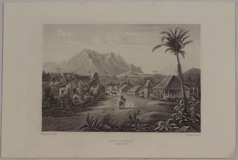 Bella veduta animata di Los Pozas a Cuba del 1850 circa. Atlante: Meyer s Universum 1838-1860 circa Data: 1850 circa Tecnica: Incisione su acciaio Dimensione della pagina: 15,5x23 cm Dimensione dell'incisione: 11x16 cm Condizioni. Buone. Alcune fioriture e usure marginali.Beautiful animated view of Los Pozas in Cuba of 1850 circa. Date: 1850 circa Atlas: Meyer s Universum 1838-1860 circa Technique: Steel etching Leaf Dimension: 15,5x23 cm (6.1x9.1 inches) Engraving Dimension: 11x16 cm (4.3x6.3 inches) Conditions: Good conditions. Some foxings and worn edge
