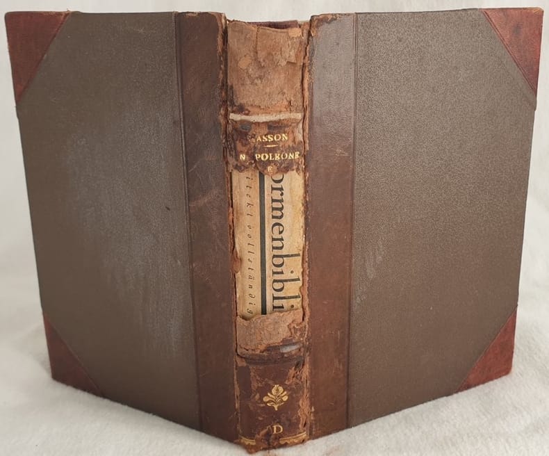 Edizione del 1934 di questa monografia su Napoleone e le donne di Federico Masson. Traduzione di M. T. Massa con prefazione di Gian Daulì. All'interno alcune planches. Tra gli argomenti trattati: Giuseppina di Beauharnais, la cittadina Bonaparte, la Grassini, Incoronazione di Giuseppina, Stefania de Beauharnais, Ortensia, Madama Walewska, Maria Luisa, Isola d'Elba, I cento giorni ecc... Ex libris al contropiatto anteriore e firma datata 1937 al frontespizio. In discrete condizioni Copertina in mezza pelle in mediocri condizioni generali con lievi usure ai margini e dorso mancante. Legatura in buone condizioni. All'interno le pagine si presentano in ottime condizioni con rare fioriture. In 16. Dim. 18,5x13,5 cm. Pp. 285+(1).Edition of 1934 of this monography about Napoleon and women by Federico Masson. Translation by M. T. Massa with prefation by Gian Daulì. All'interno alcune planches. Tra gli argomenti trattati: Giuseppina di Beauharnais, la cittadina Bonaparte, la Grassini, Incoronazione di Giuseppina, Stefania de Beauharnais, Ortensia, Madama Walewska, Maria Luisa, Isola d'Elba, I cento giorni ecc... Ex libris in the front counterplate and signature dated 1937 in the title page. In fair conditions. Half leather cover in poor general conditions lightly worn in the extremities and spine lacking. Binding in good conditions. Inside pages are in very good conditions with occasional foxings. In 16. Dim. 18,5x13,5 cm. Pp. 285+(1).