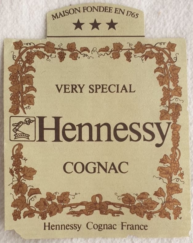 Etichetta del cognac francese "Very special Hennessy". In buone condizioni. Formato cm. 9x7. Label of the french cognac "Very special Hennessy". In good conditions. Size cm. 9x7.