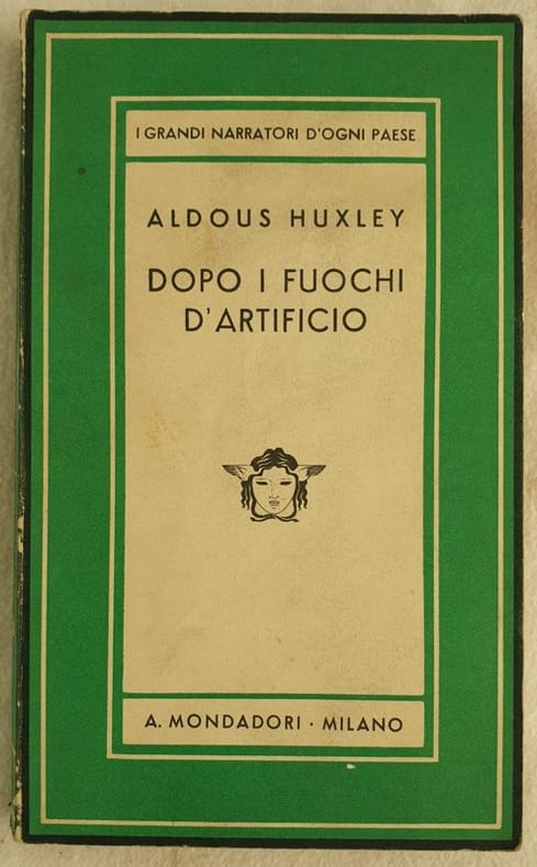 Prima edizione italiana del 1936 del romanzo "Dopo i fuochi d'artificio" dello scrittore inglese Aldous Huxley (1894-1963). Volume numero 69 della collana "Medusa". Firma datata 1936 alla prima carta bianca. In ottime condizioni. Copertina editoriale in buone condizioni generali con lievi usure ai margini e dorso. Legatura in buone condizioni. Pagine in ottime condizioni con rare fioriture. In 8. cm 20x12. Pp. 277+(7)First italian edition of 1936 of the novel "Dopo i fuochi d'artificio" by the english writer Aldous Huxley (1894-1963). Volume number 69 of the series "Medusa". Signature dated 1936 in the first endpage. In very good conditions Editorial cover in good conditions lighttle worn in the extremities. Binding in good condition. Pages in good conditions with occasional foxing. In 8. cm 20x12. Pp. 277+(7)