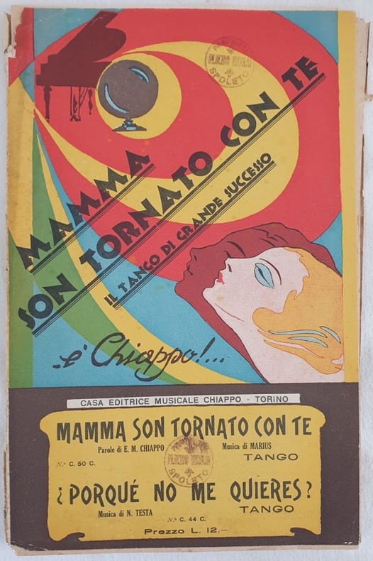 Partitura completa per orchestra del 1930 delle melodie di Marius "Mamma son tornato con te" e N. Testa "Porque no me quieres?".<BR>Copertina morbida editoriale.<BR>GENERE: Tango<BR>STRUMENTI: pianoforte, violini; cello; basso, tromba, trombone, sassofono, clarinetto, flauto, batteria<BR>ANNO: 1930<BR>DIMENSIONI: In 8. cm 27x17,5<BR>PAGINE: pp. 38<BR>CONDIZIONI: Buone condizioni. Ex libris in copertina Complete score for orchestra of 1930 of the melodies of Marius "Mamma son tornato con te" e N. Testa "Porque no me quieres?".<BR><BR>Editorial soft cover.<BR>MUSIC: Tago<BR>STRUMENTI: piano, violin; cello; bass, trumpet, trombone, saxophone, clarinet, flute, drums<BR>YEAR: 1930 SIZE: In 8. cm 27x17,5 PAGES: pp. 38 CONDITIONS: Good conditions. Ex libris in the cover