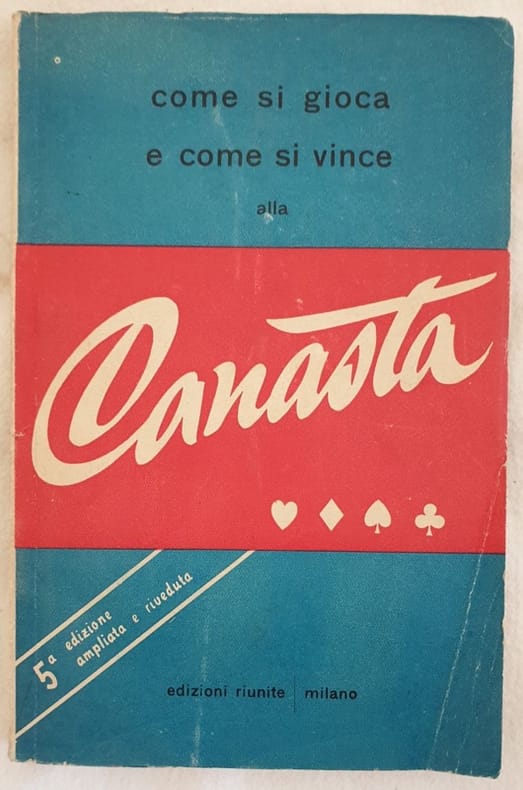 Edizione del 1950 di questo manuale sul giuoco della canasta a cura di Sonia Guidi. All'interno: Origini e storia della canasta, Regolamento della canasta e sviluppo del gioco, La tattica del gioco, Altri modi di giocare la canasta. Alcune illustrazioni all'interno. Sottolineature a matita rossa. In buone condizioni Copertina editoriale in buone condizioni generali con lievi usure marginali. Legatura in buone condizioni. Pagine in buone condizioni con rare fioriture. In 16. Dim. 18,5x12,5 cm. Pp. 95+(1) Edition of 1950 of this manual about the game of canasta cared by Sonia Guidi. inside: Origins and history of canasta, Rulees of canasta and development of game, Tactic of game, Other ways to play to canasta. Some illustrations inside. Underlinings with red pencil. In good conditions. Editorial cover in good general conditions lightly worn in the extremities. Binding in good conditions. Inside pages are in good conditions with foxing. In 16. Dim. 18,5x12,5 cm. Pp. 95+(1)