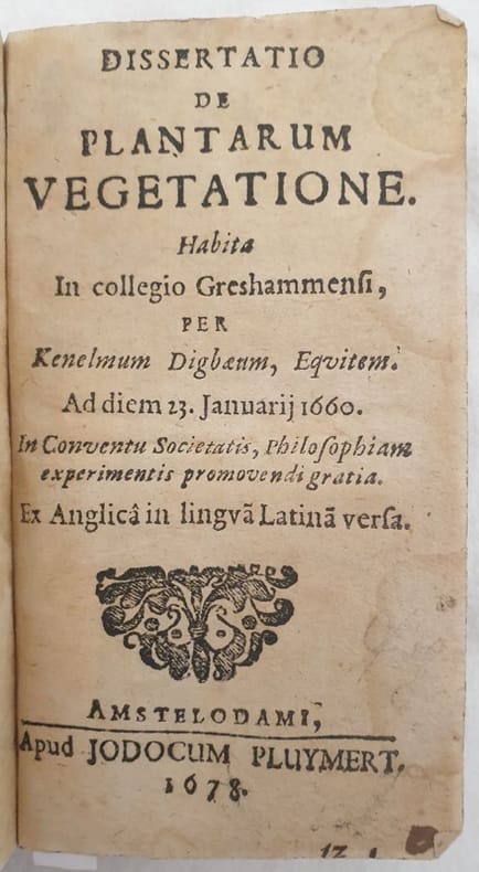 Interessante raccolta seicentesca di due opere di botanica. La prima è l'edizione del 1678 dell'opera "Dissertatio de plantarum vegetatione" del filosofo naturale Digby Kenelm (1603-1665), membro della Royal Society e padre del vino in bottiglia. Nel 1654 circa supportò gli esperimenti alchemici nel circolo di Samuel Harlib (al quale apparteneva anche Robert Boyle) e nel 1661 aprì il suo laboratorio personale insieme all'alchemico transilvano Johannes Banfi Hunneadesos come assistente. L'opera, pubblicata per la prima volta nel 1661 come "A discourse concerning the vegetation of plants" è uno studio sulla crescita delle piante che sottolinea l'importanza dell'aria vitale, l'ossigeno, sostentamento delle piante, gemrinazione, riproduzione, Kenelm fu il primo in Europa a pubblicare questo tipo di risultati. Traduzione in latino a cura di Olferd Dapper. La seconda opera è l'edizione del 1679 del "Tractatus de arboribus coniferis et pice conficienda" di Johanne Conrado Axtio sulla gestione delle foreste di conifere e l'estrazione della pece, resine e carbon fossile. Risultano mancanti il frontespizio, le prime prime 84 pagine e tutte le incisioni. Sono presenti i seguenti capitoli "De modo conficiendae pici et usu" sull'estrazione della pece (mancante delle prime due carte), De fumo et fuligine, De candelis ligneis, De carbonibus & modo eos conficiendi. Alla fine "Epistola ad amicum de Antimonio" nella quale l'autore accusa il medico francese Gui Patin (1601-1672) di aver tentato di uccidere il proprio figlio (malato) anzichè curarlo con lo stesso mezzo (Ferguson). In buone condizioni. Copertina morbida con titolo manoscritto al dorso in buone condizioni generali con lievi usure marginali. Scoloritura al dorso. Legatura in buone condizioni. All'interno le pagine si presentano in buone condizioni con fioriture e bruniture. In 24. Dim. 13x7,5 cm. Pp. (6)+78+da 85 a 131. Interesting collection of 17th century of two works of botany. The first one is the edition of 1678 of the work "Dissertatio de plantarum vegetatione" by the natural phylsoopher Digby Kenelm (1603-1665), member of Royal Society and father of wine bottle. In 1654 circa he supported alchemic experiments in the circle of Samuel Harlib (to which Robert Boyle also belonged) and in 1661 had his own laboratory with the transylvanian alchemist Johannes Banfi Hunneadesos as assistant. The work was published for the first time in 1661 as "A discourse concerning the vegetation of plants" is a study about growth of plants underlining the importance of vital air, oxygen, sustenance of plants, germination, reproduction. Kenelm was the first one in Europe to publish these kind of results. Translation in latin by Olferd Dapper. The second work is the edition of 1679 of the "Tractatus de arboribus coniferis et pice conficienda" by Johanne Conrado Axtio about management of conifer forests and extraction of pitch, charcoal and resins. The title page, the first 84 pages and all the engravings lack. There are the following chapters "De modo conficiendae pici et usu" about the extraction of pitch (lacking of the first two pages), De fumo et fuligine, De candelis ligneis, De carbonibus & modo eos conficiendi. At the end "Epistola ad amicum de Antimonio" in which the author accuses the french doctor Gui Patin (1601-1672) to poison his son (who was illed) by means of it instead of which he cured him (Ferguson). In good conditions. Soft cover with handwritten title in the spine in good general conditions lightly worn in the extremities. Binding in good conditions. Inside pages are in good conditions with foxing and yellowing. In 24. Dim. 13x7,5 cm. Pp. (6)+78+from 85 to 131.