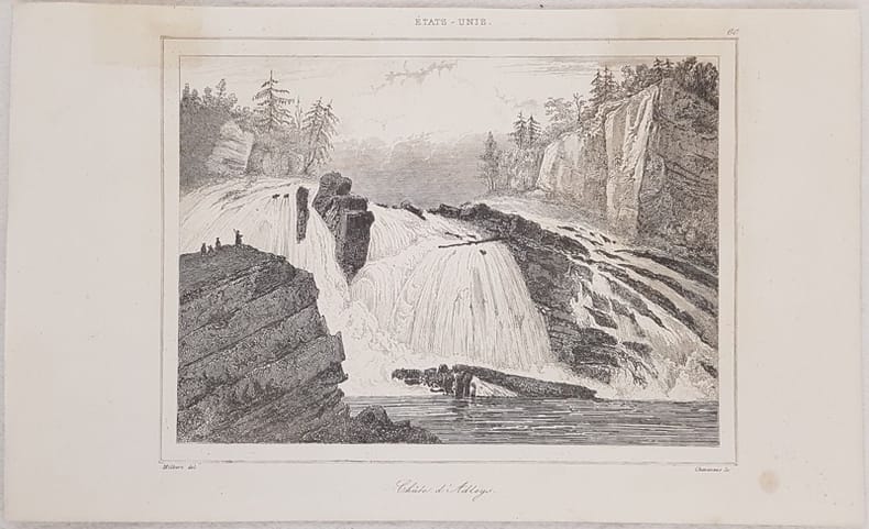 Bella veduta animata delle Cascate Adley, Fiume Hudson del 1838 circa AUTORE: Chawannes su soggetto di Milbert TECNICA: incisione su acciaio DIMENSIONI FOGLIO: 20,5x12,5 cm DIMENSIONI INCISIONE: 14x10,5 cm EPOCA: 1838 circa CONDIZIONI: Buone. Alcune fioriture. Restauro al verso. Beautiful view of Adley Falls in Hudson River of 1838 circa. Author: Chavannes after Milbert Date: 1838 circa Technique: Steel etching Leaf Dimension: 20,5x12,5 cm (8.1x4.9 inches) Engraving Dimension: 14x10,5 cm (5.5x4.1 inches) Conditions: Good conditions. Some foxings.