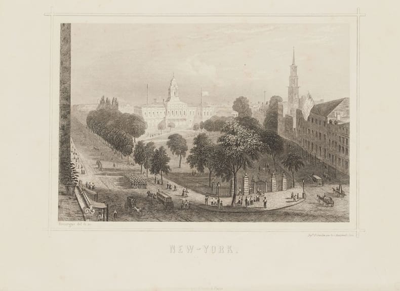 Bella veduta animata della Borsa di Wall Street a New York del 1870 circa. Autore: Adolphe Rouarge (1810-1870). Emile Rouarge Atlante: Géographie Generale physique politique et economique Data: 1870 circa Tecnica: Incisione su acciaio Dimensione della pagina: 16x26 cm cm Dimensione dell'incisione: 11,5x16,5 cm Condizioni. Buone. Alcune rare fioriture.Very beautiful animated view of Wall Street in New York of 1870 circa. Date: 1870 circa Author: Adolphe Rouarge (1810-1870). Emile Rouarge Atlas: Géographie Generale physique politique et economique Technique: Steel etching Leaf Dimension: 16x26 cm (6.3x10.2 inches) Engraving Dimension: 11,5x16,5 cm (4.5x6.5 inches) Conditions: Good conditions. Some foxings.