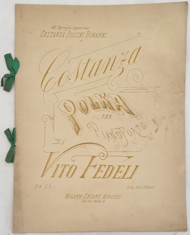 Edizione degli anni '70 di questo spartito per pianoforte della melodia "Costanza" del compositore Vito Fedeli. Nastro originale in copertina. ANNO: anni '70 DIMENSIONI: In folio. cm 34x26 PAGINE: pp. 3 CONDIZIONI: Buone condizioni. Ricordi edition of 1870's of this score for per piano (36089) of the melody "Costanza" by the composer Vito Fedeli YEAR: anni '70 SIZE: In 8. cm 34x26 PAGES: pp. 3 CONDITIONS: Good conditions.