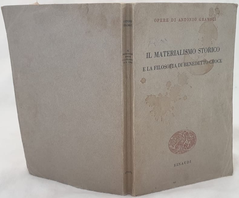Prima edizione del 1948 di questa opera sul materilaismo storico e la filosofia di Benedetto Croce scritto da Antonio Gramsci (1891-1937) politico filosofo giornalista linguista. Nel 1921 fu tra i fondatori del Partito Comunista d'Italia. All'interno: Avviamento allo studio della filosofia e del materialismo storico, alcuni problemi per lo studio della filosofia della prassi, Note critiche su un tentativo di "Saggio popolare di sociologia", La filosofia di Benedetto Croce, Croce e il materialismo storico, Noterelle di economia ecc... In buone condizioni. Copertina editoriale in buone condizioni generali con lievi usure ai margini e dorso. Macchie. Legatura in buone condizioni. All'interno le pagine si presentano in ottime condizioni con rare fioriture. In 8. Dim. 22,5x14,5 cm. Pp. XXII+299. Peso Kg. 0,316 First edition of 1948 of this work about historical materialism and phylosophy of Bendetto Croce written by Antonio Gramsci (1891-1937) politician phylosohper journalist. In 1921 he was between the establishers of the Partito Comunista d'Italia. In good conditions. Editorial cover in good general conditions lightly worn in the extremities. Stains. Binding in good conditions. Inside pages are in very good conditions with occasional foxing. In 8. Dim. 22,5x14,5 cm. Pp. XXII+299. Peso Kg. 0,316